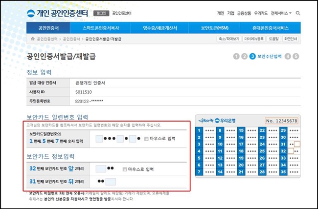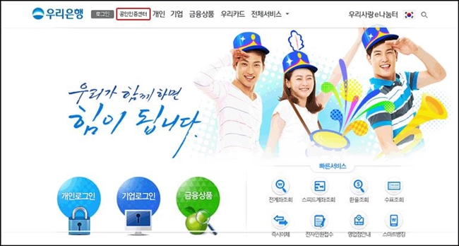 공동인증서 발급 방법 안내 (예시:우리은행)