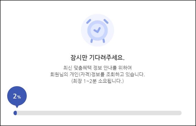 로그인을 완료하면 로그인한 개인정보를 바탕으로 맞춤 정부혜택이 있는지 자동으로 검색이 됩니다.