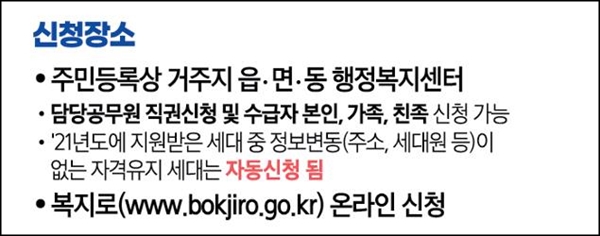 21년도에 지원받은 세대 중 정보변동이 없는 자격유지 세대는 자동신청 됨
