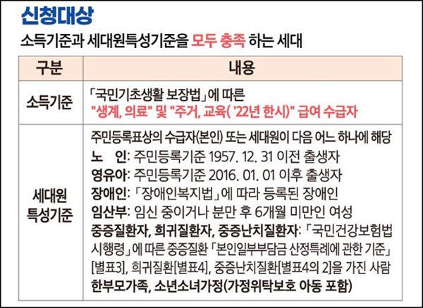 소득기준과 세대원 특성기준을 모두 충족하는 세대
